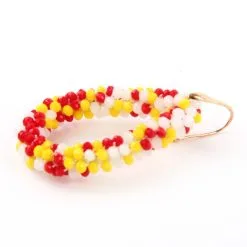 Oeteldonk golf lint geel, breedte 1,2 cm. Leuk te combineren met golf lint rood en wit. Voor het pimpen van je kiel, jas, hoed, tas, enz.